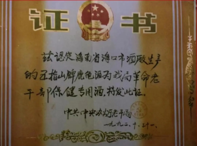 劉浩為王魯?shù)仡C發(fā)了“椰島鹿龜酒山東品牌推廣大使”證書