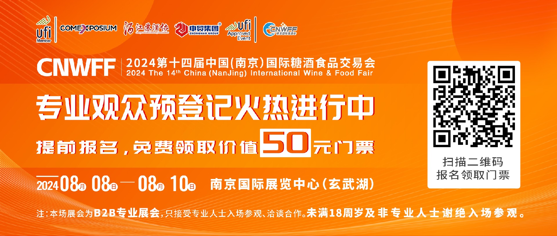 8月8日-10日,CNWFF2024第十四屆中國(南京)國際糖酒食品交易會(以下簡稱第十四屆南京糖酒會)將在南京國際展覽中心盛大舉辦。(主題展:AFWE2024亞洲名酒展暨第十四屆中國(江蘇)國際酒業(yè)博覽會、2024第十四屆中國(南京)國際食品飲料展覽會)